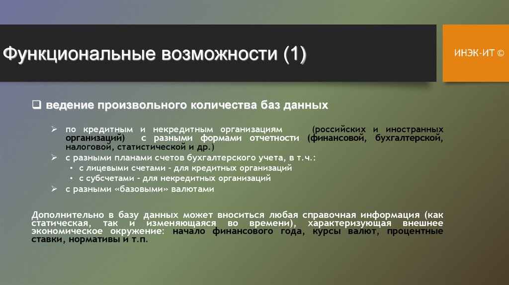 Функциональные возможности (2)создание аналитических приложений и схем