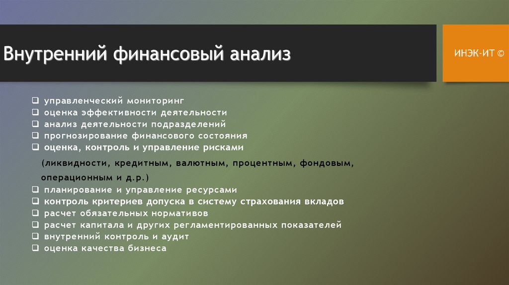 внутреннего и внешнего финансового анализа