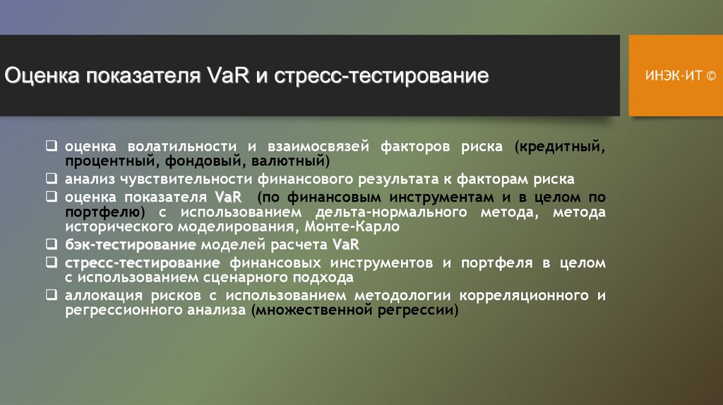 Оценка показателя VaR и стресс-тестированиеоценка волатильности и взаимосвязей факторов риска (кредитный,