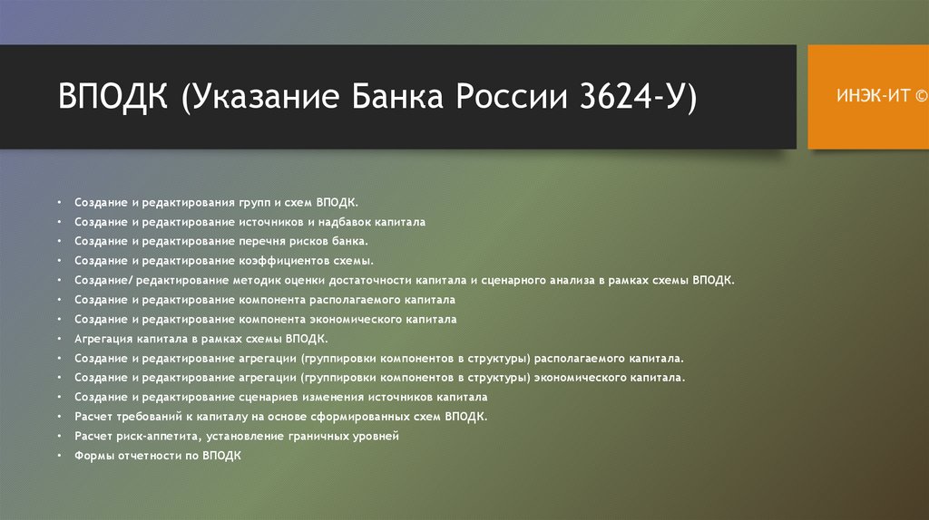 расчет капитала и других регламентированных показателей
