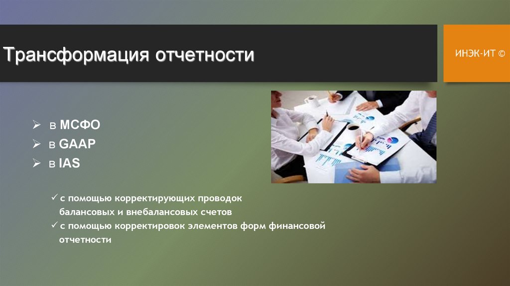 трансформации отчетности (в МСФО, IAS, GAAP)