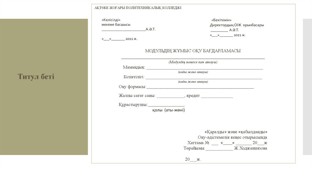 АҚТӨБЕ ЖОҒАРЫ ПОЛИТЕХНИКАЛЫҚ КОЛЛЕДЖІ«Келісілді»