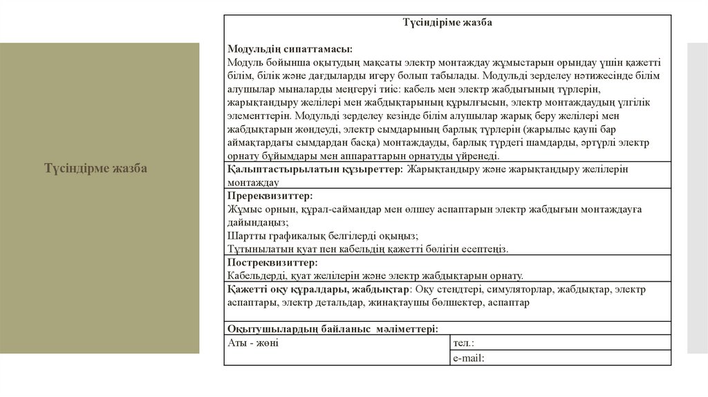 білім, білік және дағдыларды игеру болып табылады. Модульді зерделеу нәтижесінде білім