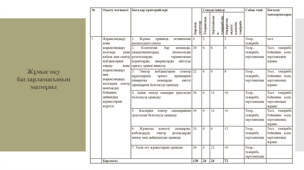 алушылар мыналарды меңгеруі тиіс: кабель мен электр жабдығының түрлерін,