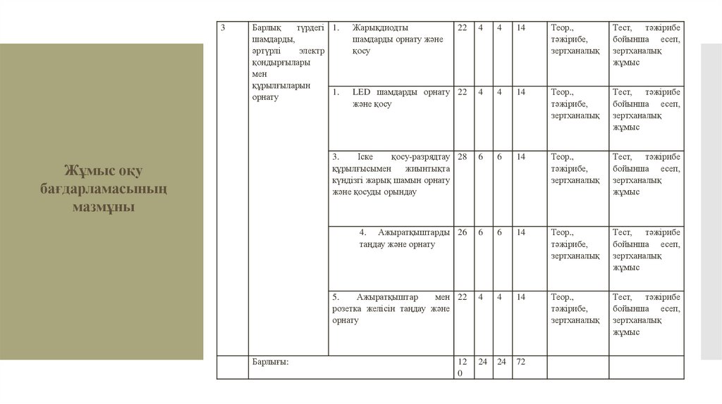 Қалыптастырылатын құзыреттер: Жарықтандыру және жарықтандыру желілерін