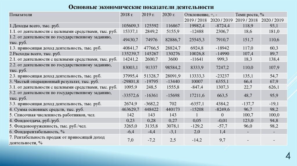 Основные экономические показатели деятельностиПоказатели