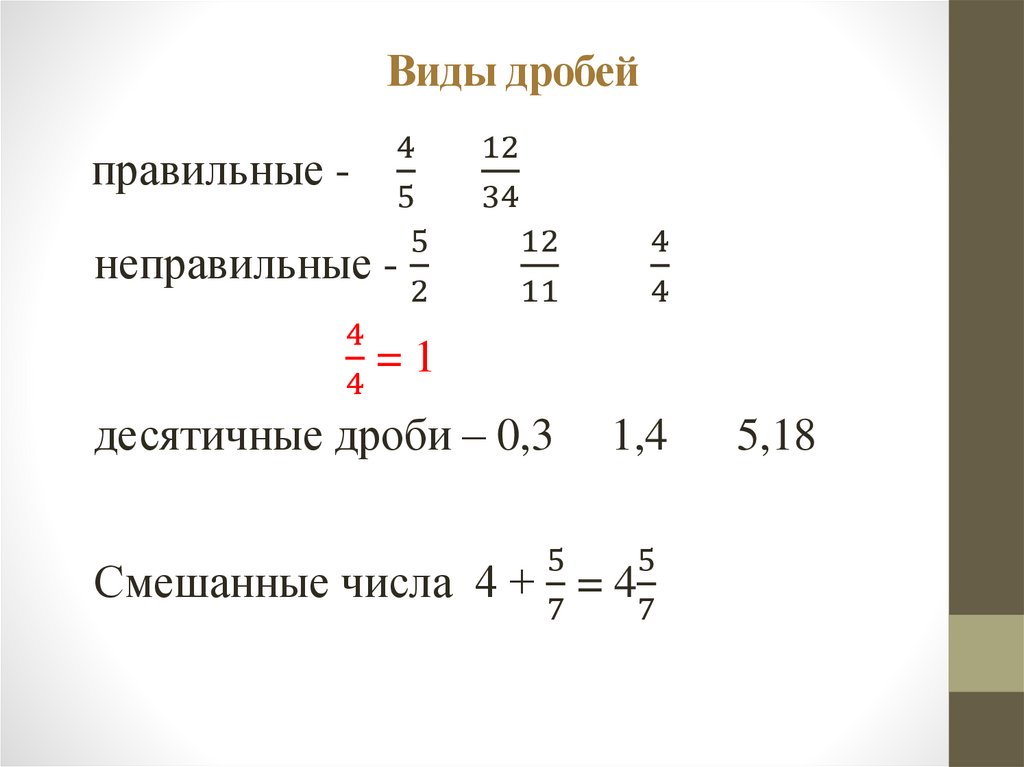 Виды дробейправильные -