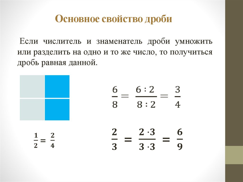 Основное свойство дробиЕсли числитель и знаменатель дроби умножить