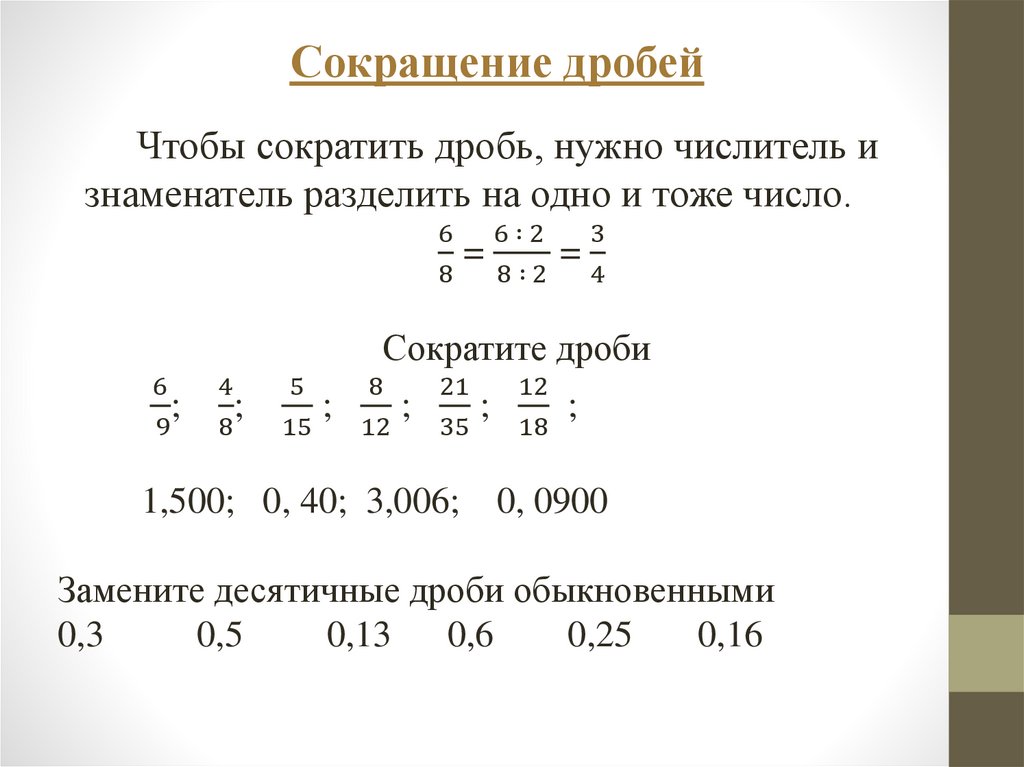 Преобразования дробей