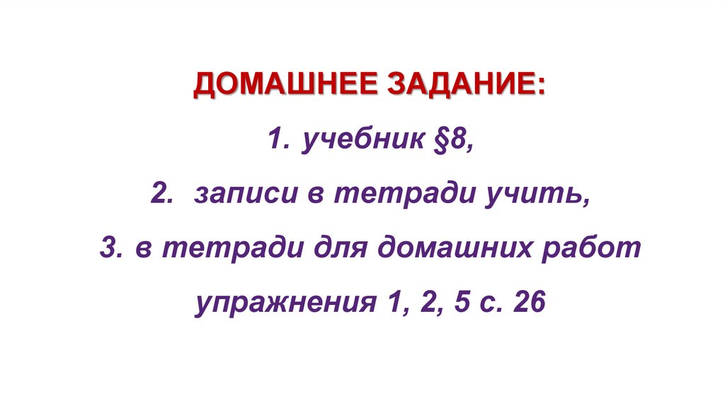 ДОМАШНЕЕ ЗАДАНИЕ:1. учебник §8,