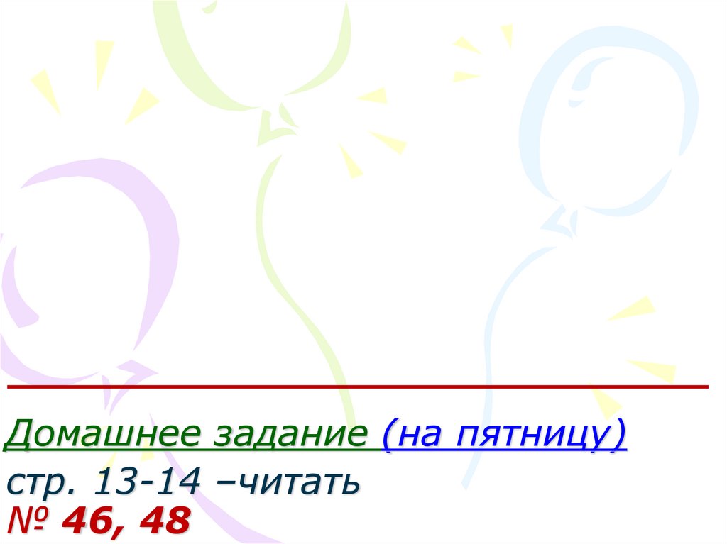 Домашнее задание (на пятницу)стр. 13-14 –читать