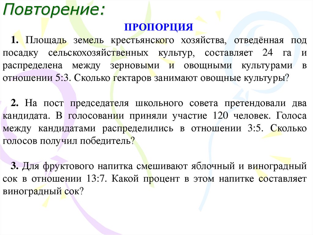 Повторение:ПРОПОРЦИЯ