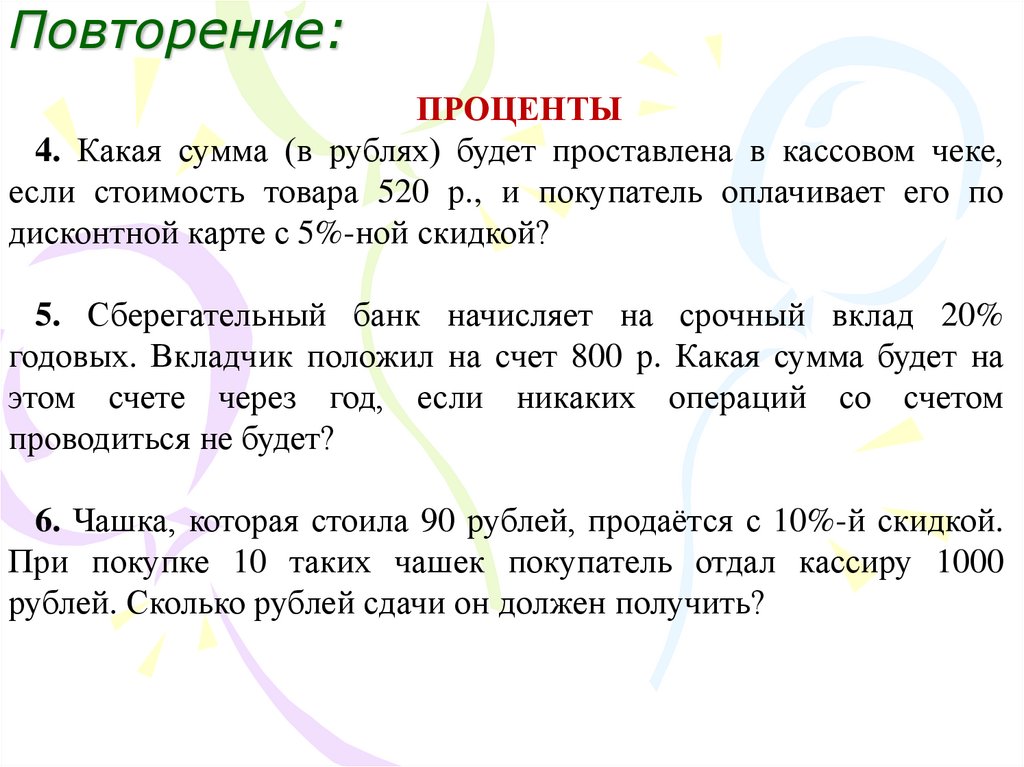 Повторение:ПРОЦЕНТЫ