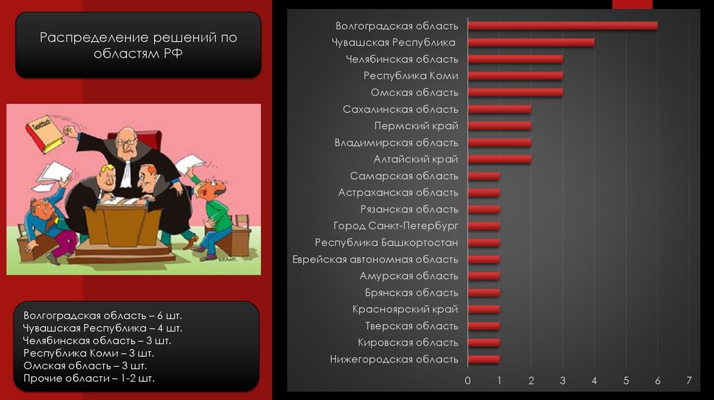 Распределение решений пообластям РФ