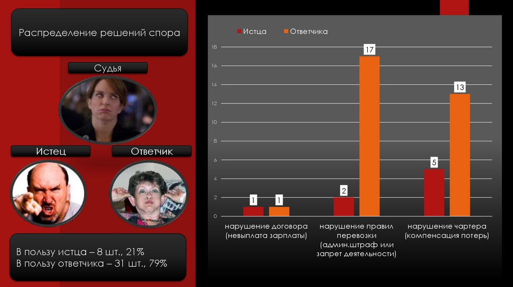 В пользу ответчика – 31 шт., 79%