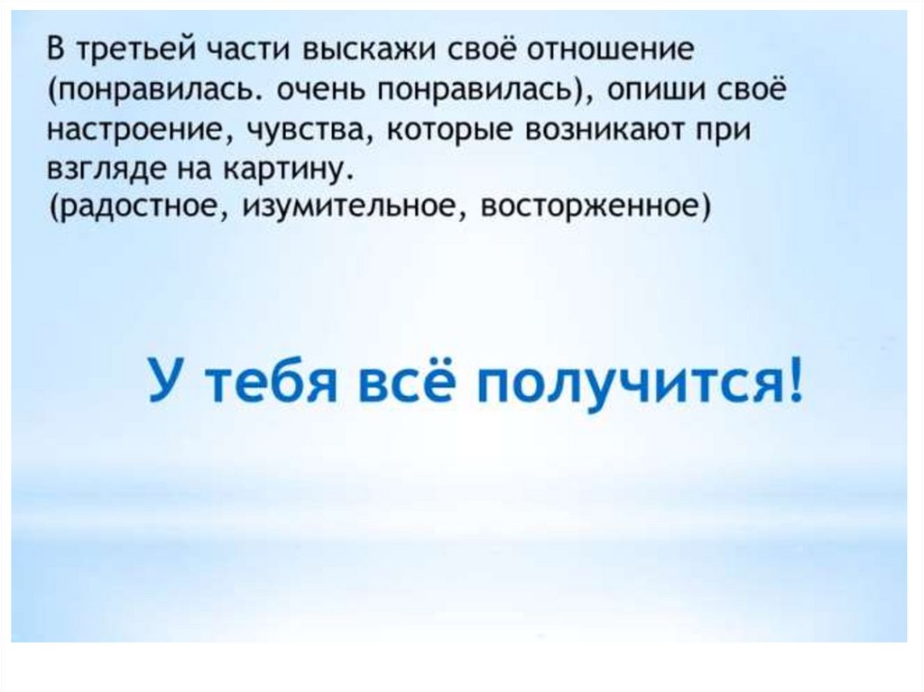 Подготовка к описанию картины И.Э. Грабаря "Февральская лазурь"