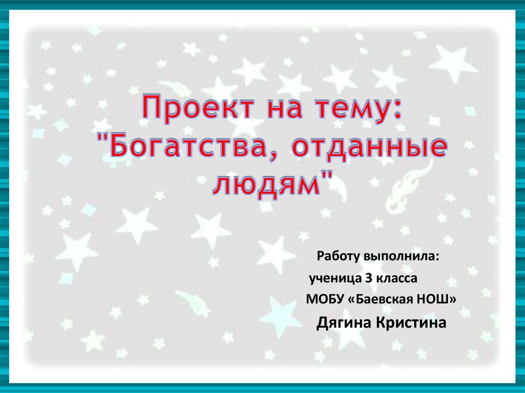 1. Проект на тему: "Богатства, отданные людям"