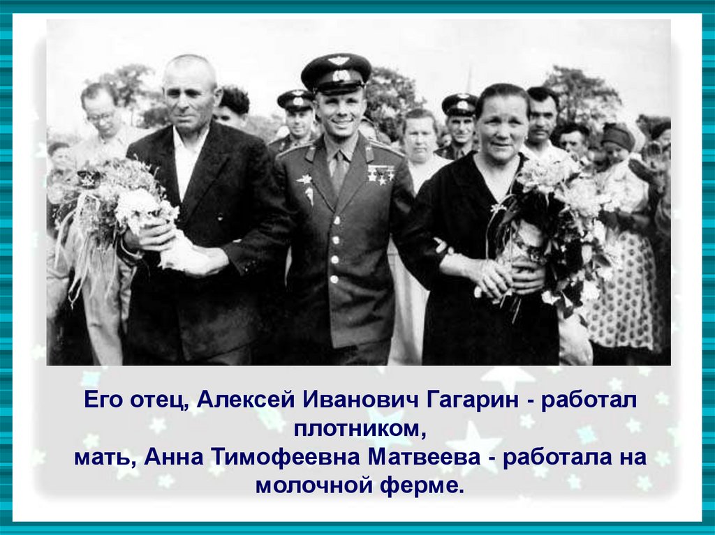 Его отец, Алексей Иванович Гагарин - работалплотником,