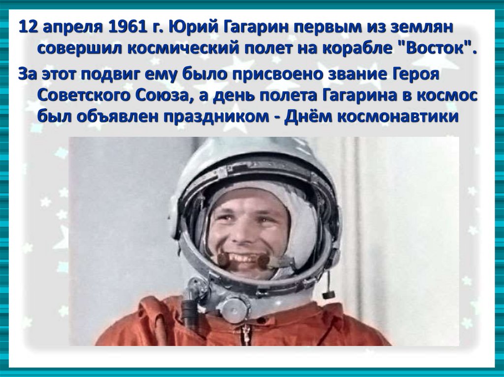 Советского Союза, а день полета Гагарина в космос