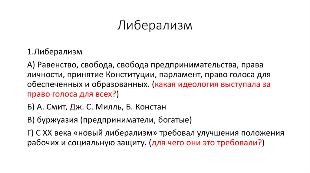 Г) С XX века «новый либерализм» требовал улучшения положения