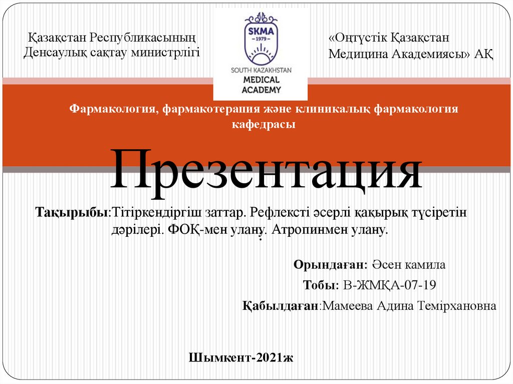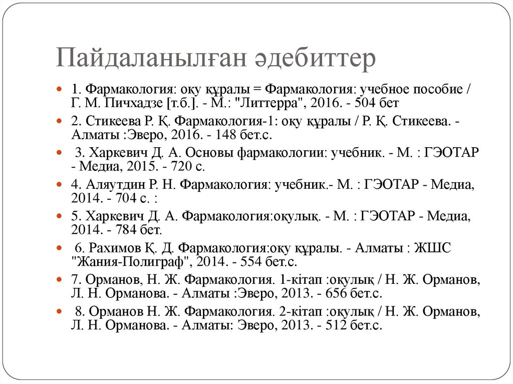 Пайдаланылған әдебиттер1. Фармакология: оқу құралы = Фармакология: учебное пособие /