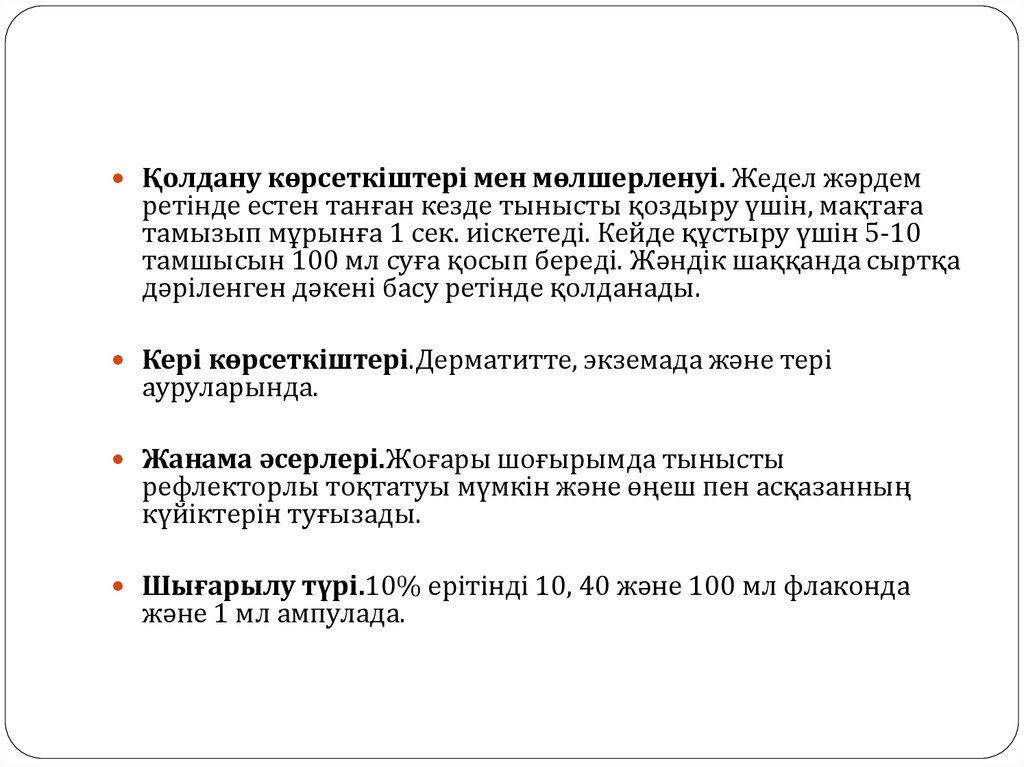 Шығарылу түрі.10% ерітінді 10, 40 және 100 мл флаконда