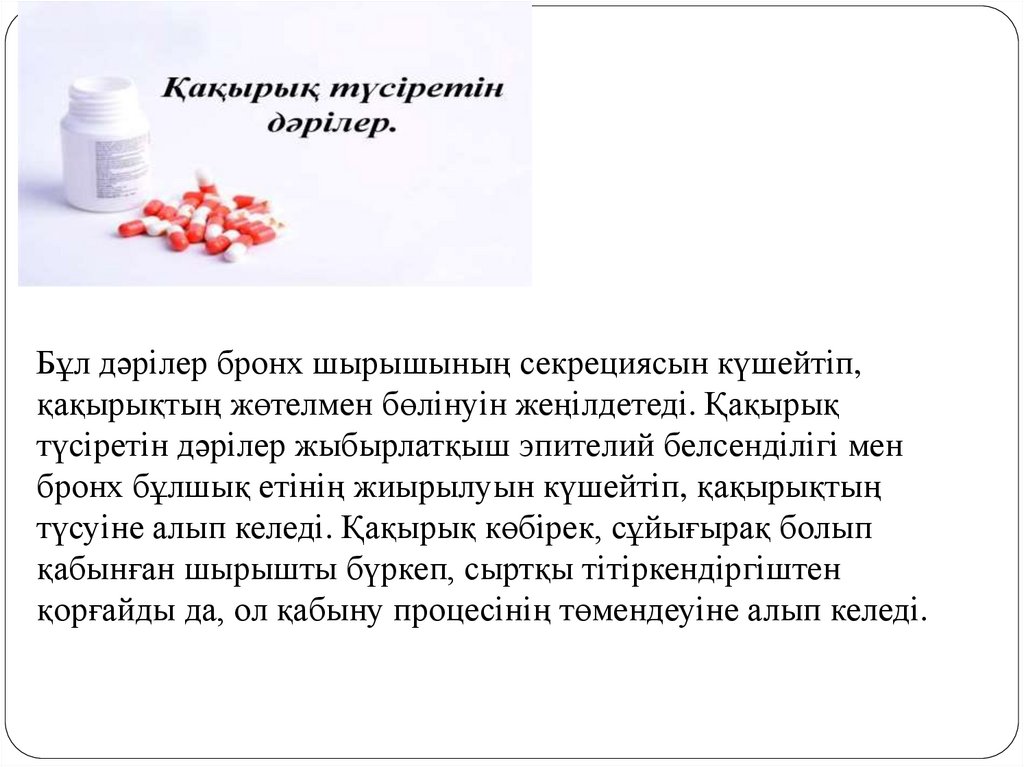 Қақырық түсіретін дәрілердіңжіктелуі.