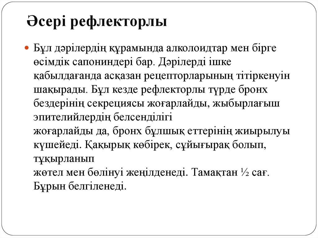 2) Рефлексті әсерлі қақырық түсіретін дәрілері