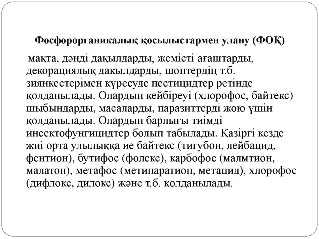 қолданылады. Олардың кейбіреуі (хлорофос, байтекс)