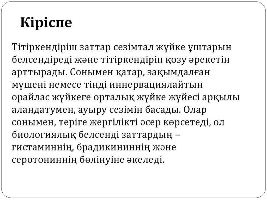 КіріспеТітіркендіріш заттар сезімтал жүйке ұштарын