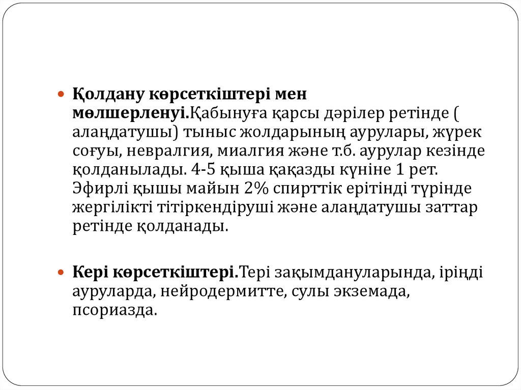 соғуы, невралгия, миалгия және т.б. аурулар кезінде