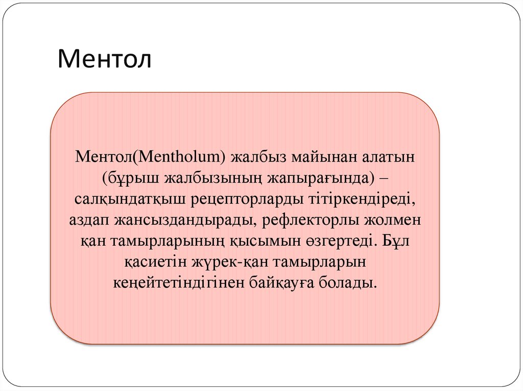 стенокардияда қолданылады. Сонымен қатар, ментол көптеген