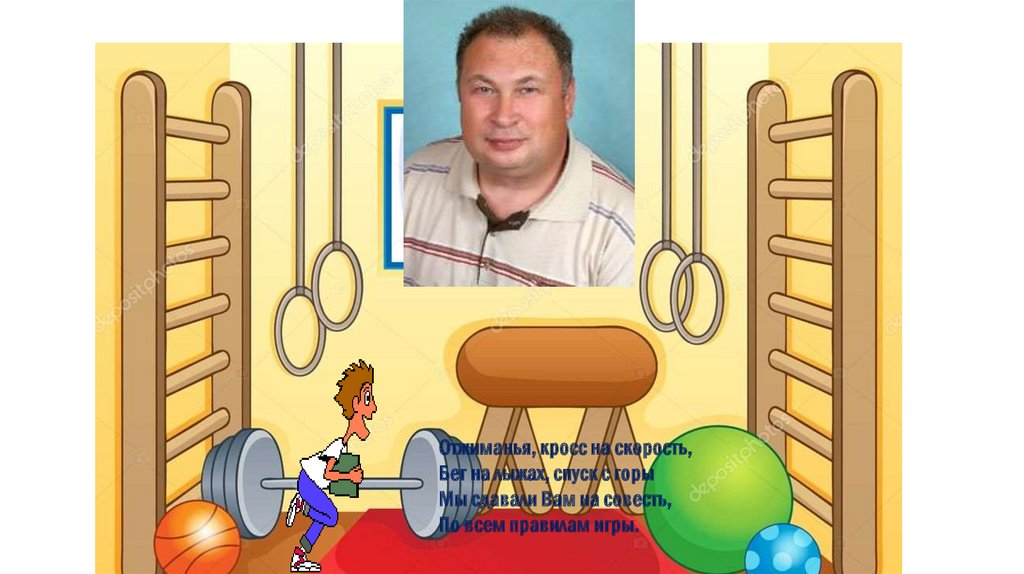 Отжиманья, кросс на скорость,Бег на лыжах, спуск с горы