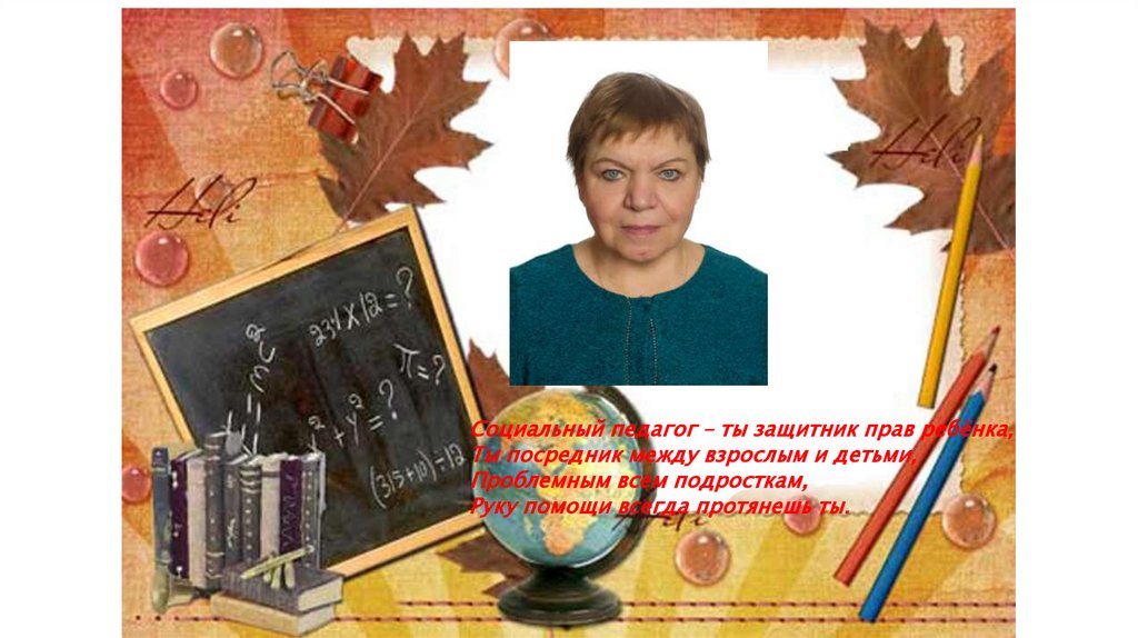 Социальный педагог – ты защитник прав ребёнка,Ты посредник между взрослым и детьми,