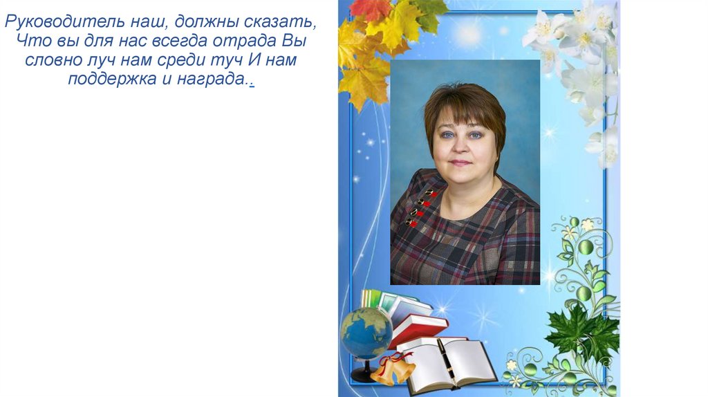 Руководитель наш, должны сказать,Что вы для нас всегда отрада Вы