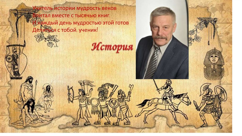 Учитель истории мудрость вековВпитал вместе с тысячью книг.