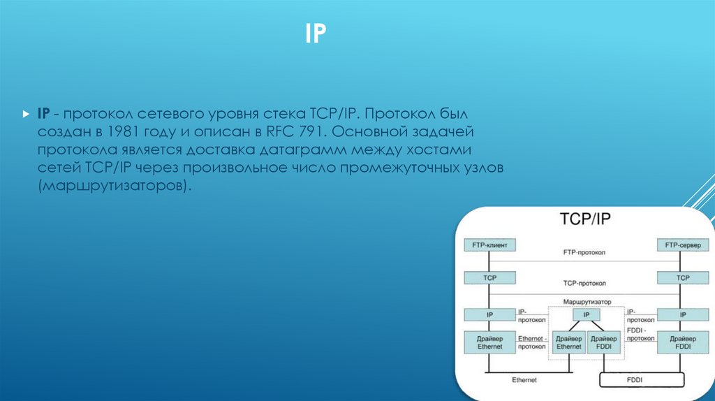создан в 1981 году и описан в RFC 791. Основной задачей