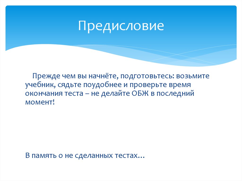 окончания теста – не делайте ОБЖ в последний