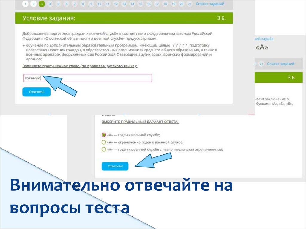 Внимательно отвечайте навопросы теста