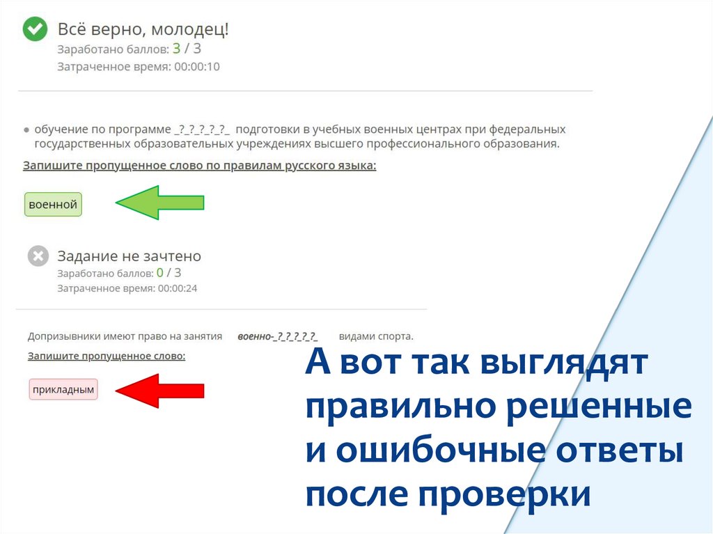 и ошибочные ответы