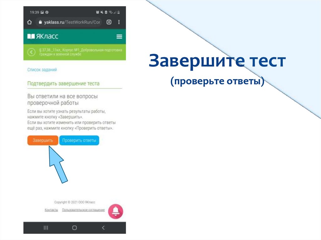 Завершите тест(проверьте ответы)