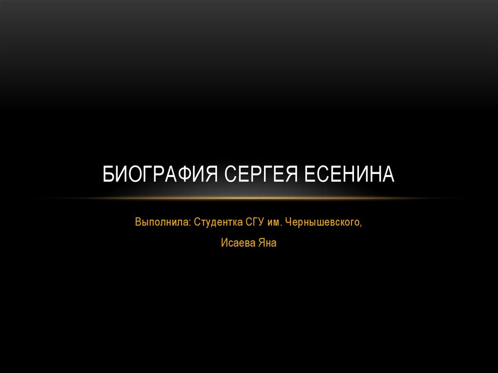БИОГРАФИЯ СЕРГЕЯ ЕСЕНИНАВыполнила: Студентка СГУ им. Чернышевского,
