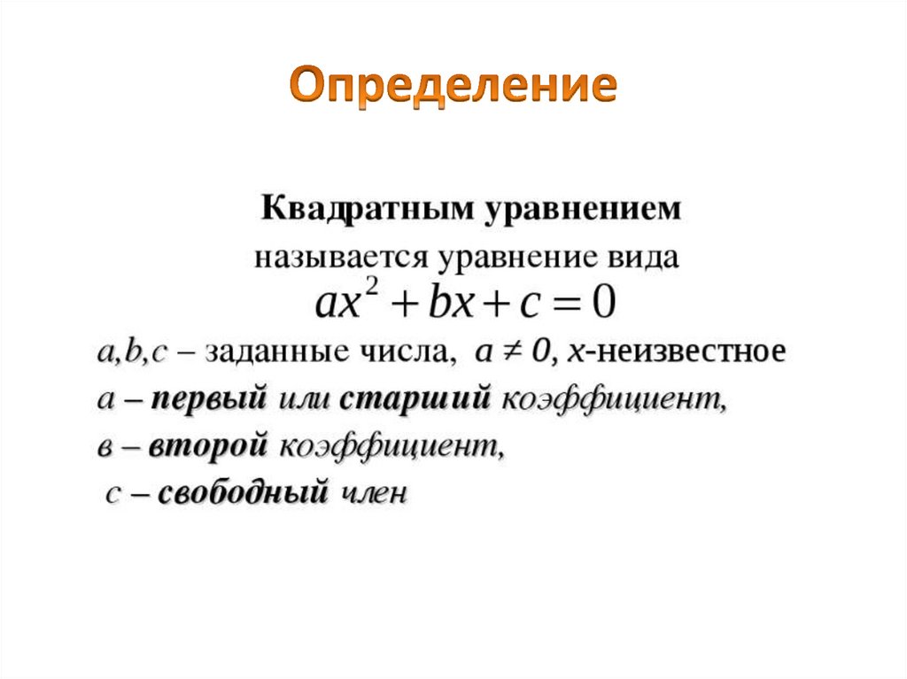 Определение квадратного уравнения. Неполные квадратные уравнения