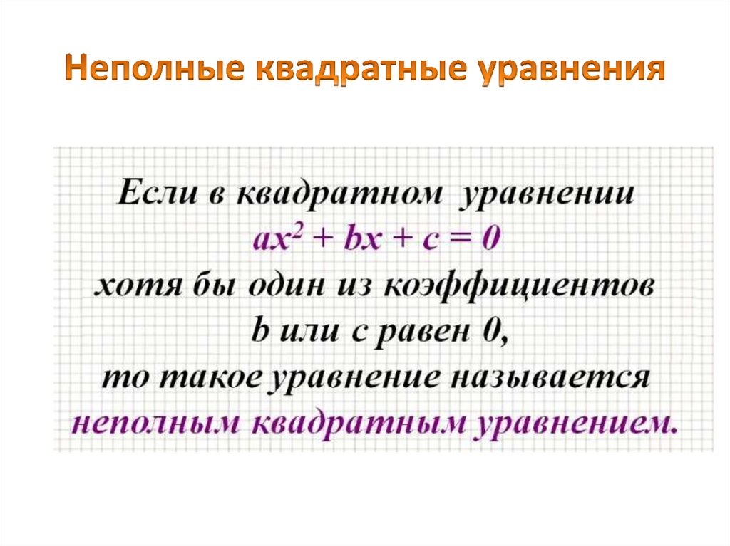 Квадратные уравнения. Полные и неполные квадратные уравнения