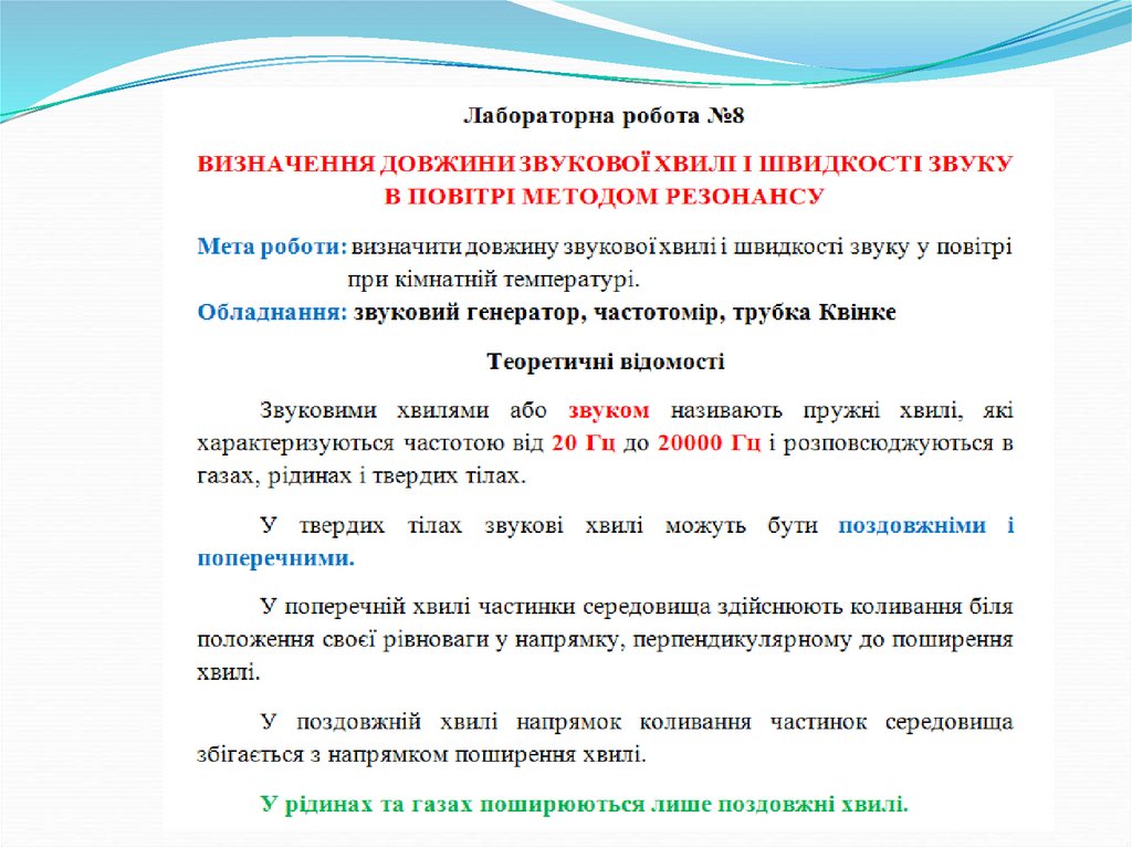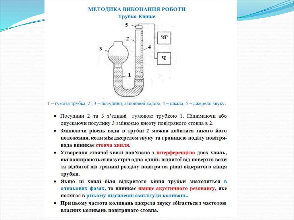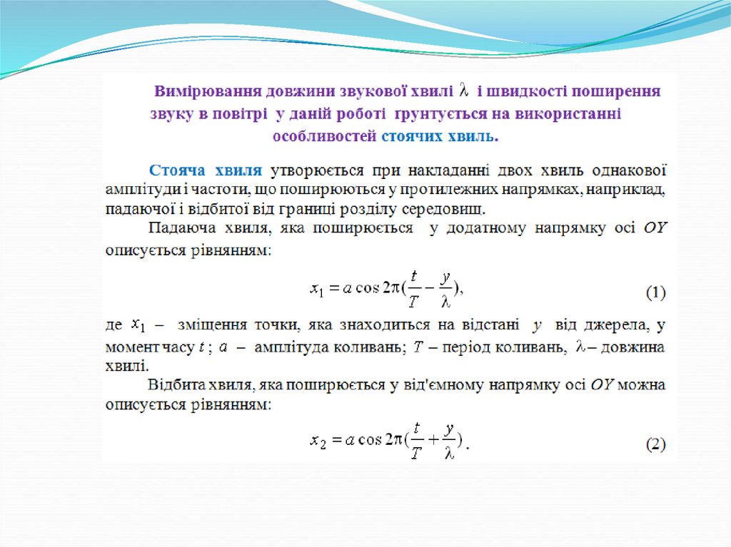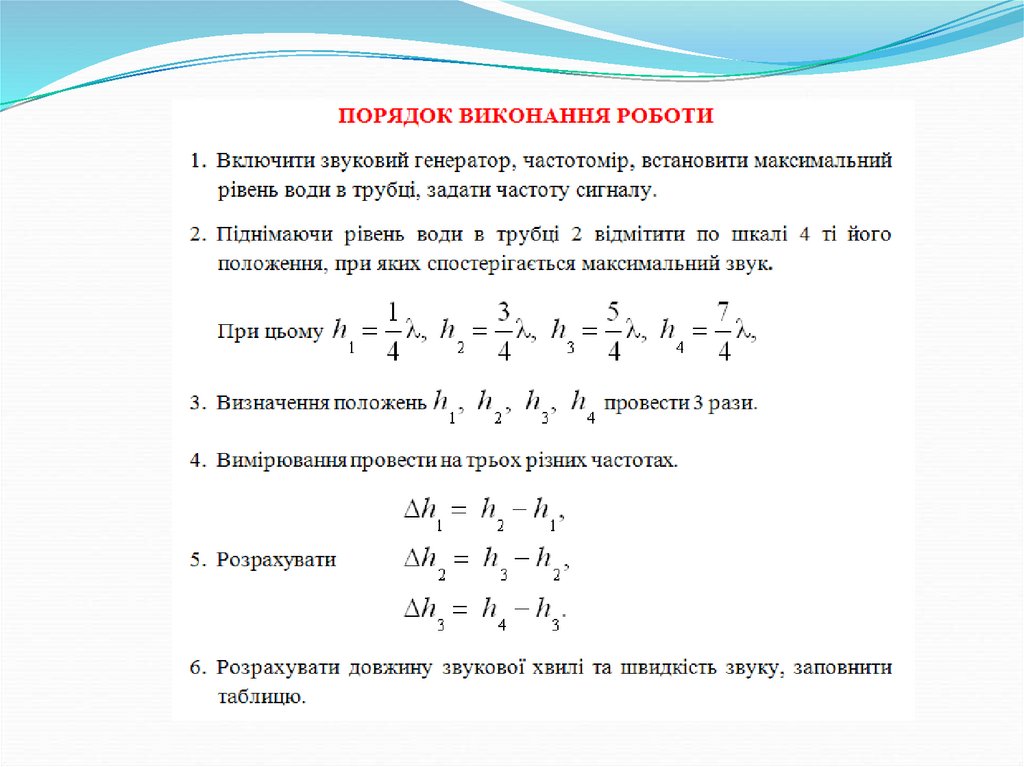 Визначення довжини звукої хвилі і швидкості звуку в повітрі методом резонансу