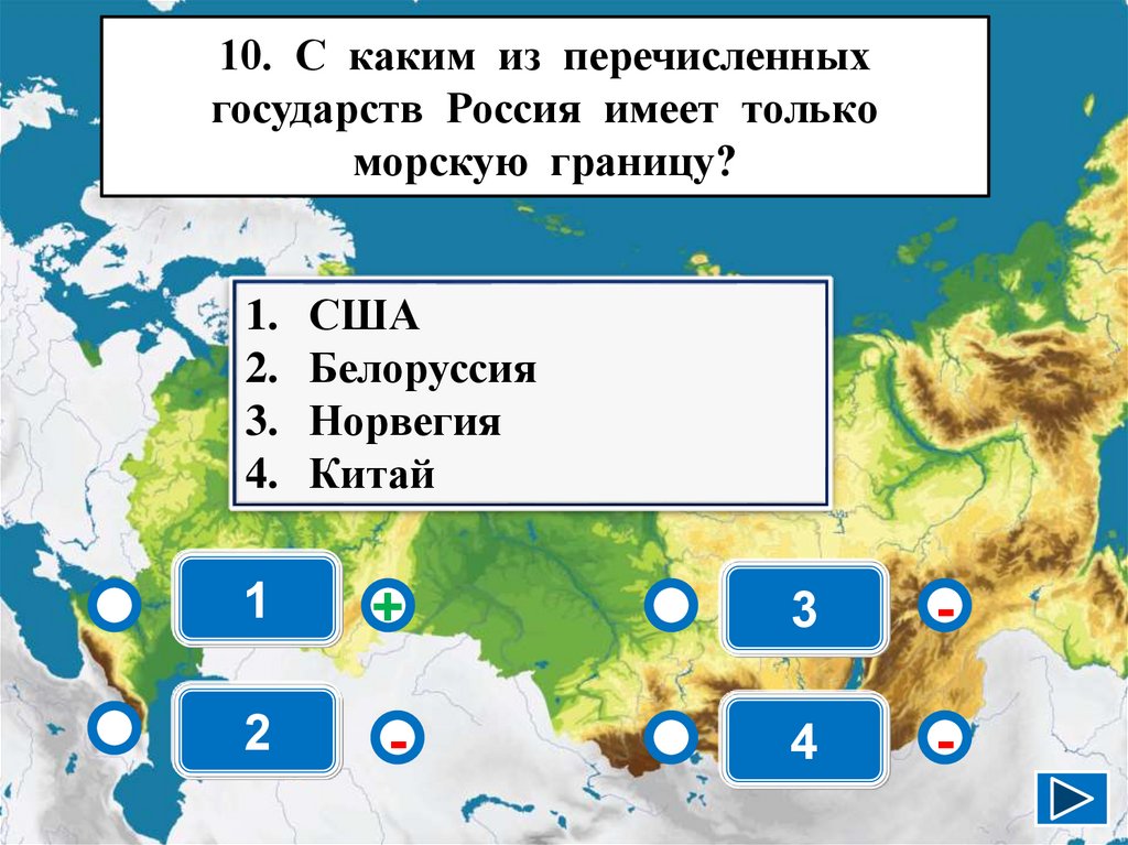 9. С каким государством Россия имеетсамую короткую по протяженности