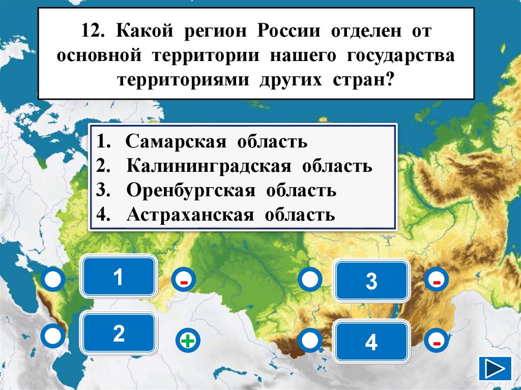 12. Какой регион России отделен отосновной территории нашего государства