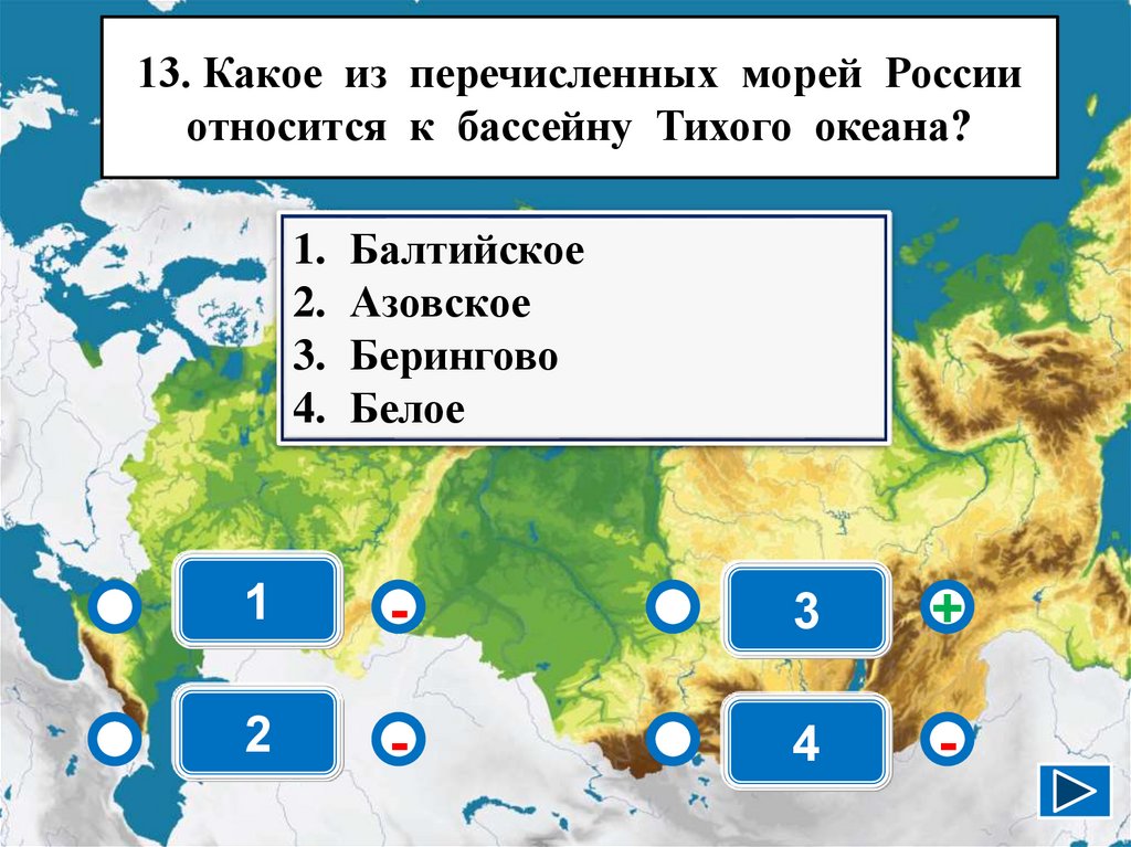 13. Какое из перечисленных морей Россииотносится к бассейну Тихого океана?