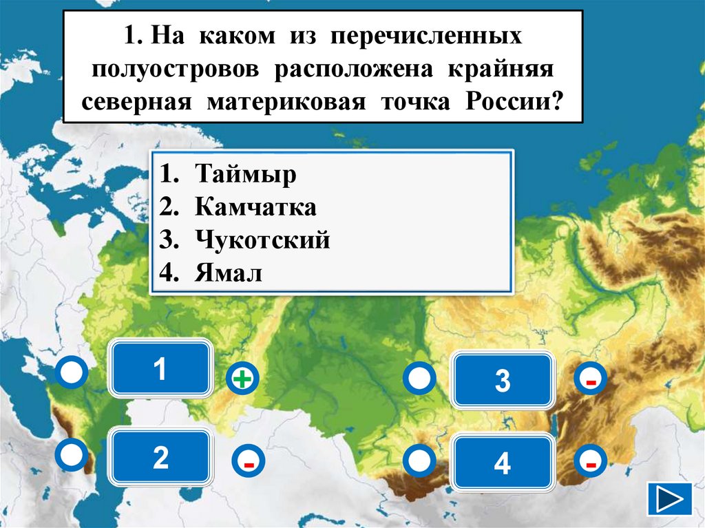 1. На каком из перечисленныхполуостровов расположена крайняя