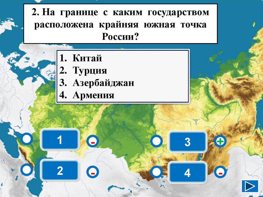 2. На границе с каким государствомрасположена крайняя южная точка